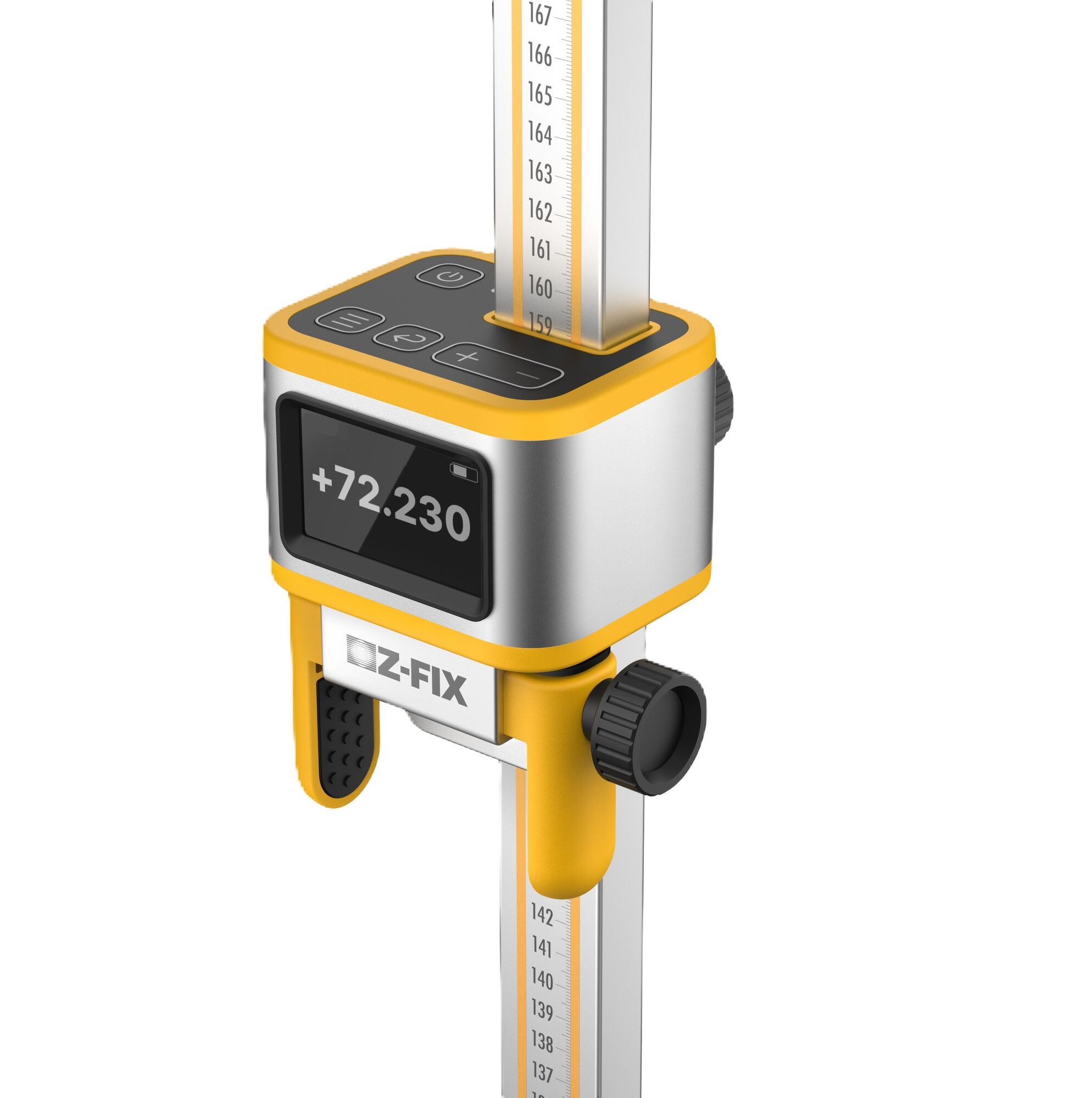 Ved blot at indtaste et kendt fikspunkt én gang, fungerer Z-FIX som en "lommeregner" til din nivelleringsstang; displayet viser dig altid den præcise højde ved bunden af stangen, uanset hvor du flytter den.